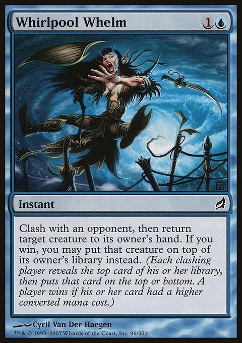 Clash with an opponent, then return target creature to its owner's hand. If you win, you may put that creature on top of its owner's library instead. (Each clashing player reveals the top card of their library, then puts that card on the top or bottom. A player wins if their card had a higher mana value.)