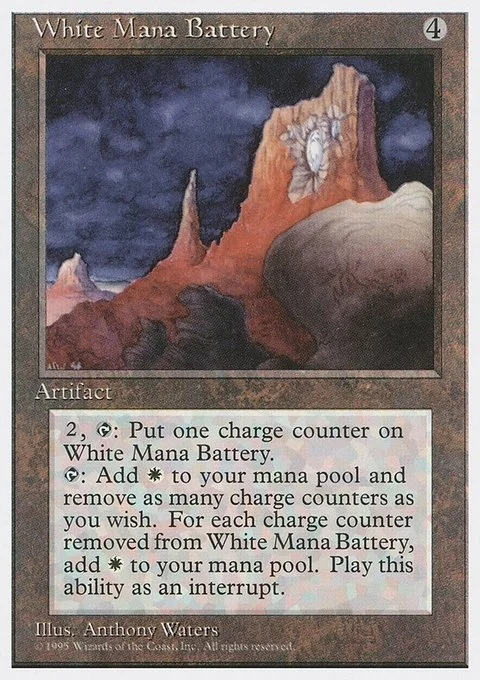 2, T: Put one charge counter on White Mana Battery.T: Add W to your mana pool and remove as many charge counters as you wish. For each charge counter removed from White Mana Battery, add W to your mana pool. Play this ability as an interrupt.