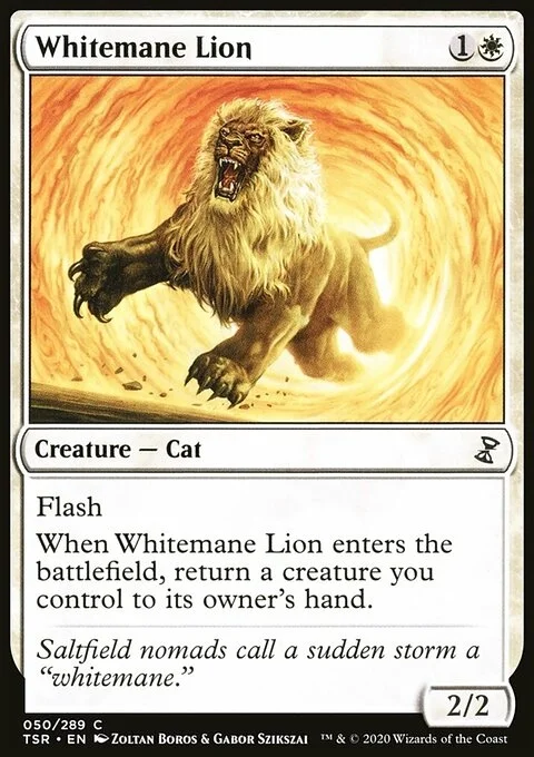 Flash When Whitemane Lion enters the battlefield, return a creature you control to its owner's hand.