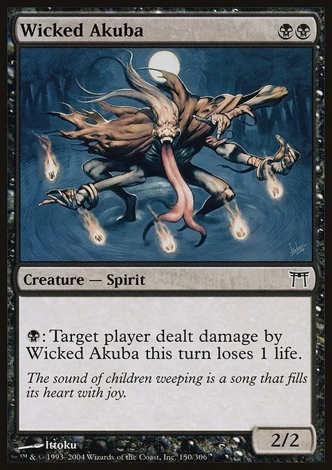 {B}: Target player dealt damage by Wicked Akuba this turn loses 1 life.