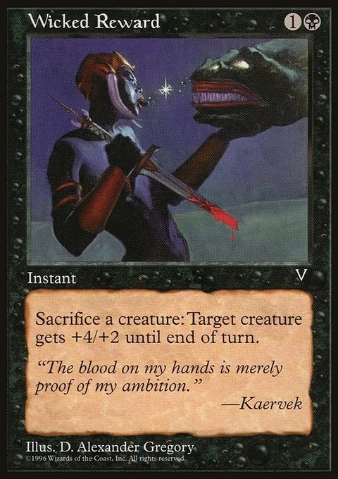 As an additional cost to cast this spell, sacrifice a creature. Target creature gets +4/+2 until end of turn.