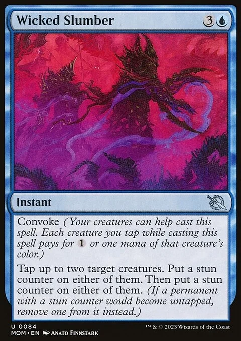 Convoke (Your creatures can help cast this spell. Each creature you tap while casting this spell pays for {1} or one mana of that creature's color.) Tap up to two target creatures. Put a stun counter on either of them. Then put a stun counter on either of them. (If a permanent with a stun counter would become untapped, remove one from it instead.)
