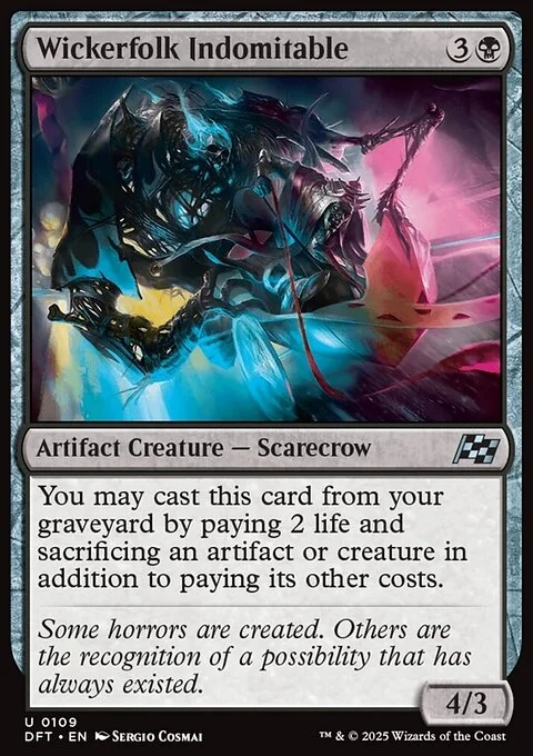 You may cast this card from your graveyard by paying 2 life and sacrificing an artifact or creature in addition to paying its other costs.