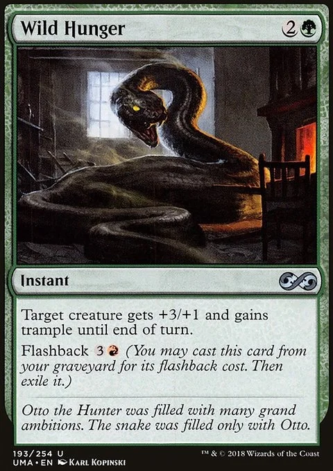 Target creature gets +3/+1 and gains trample until end of turn. Flashback {3}{R} (You may cast this card from your graveyard for its flashback cost. Then exile it.)