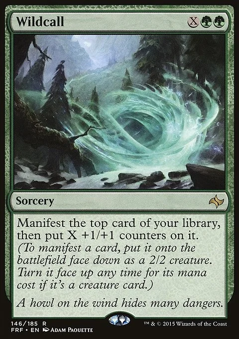 Manifest the top card of your library, then put X +1/+1 counters on it. (To manifest a card, put it onto the battlefield face down as a 2/2 creature. Turn it face up any time for its mana cost if it's a creature card.)