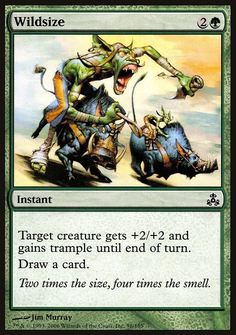 Target creature gets +2/+2 and gains trample until end of turn. Draw a card.