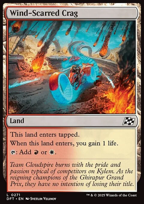This land enters tapped. When this land enters, you gain 1 life. {T}: Add {R} or {W}.