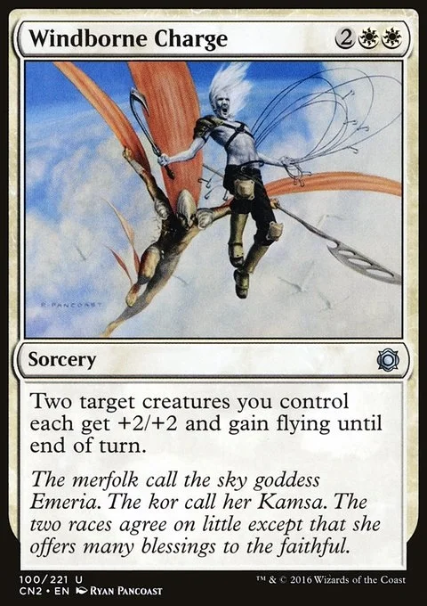 Two target creatures you control each get +2/+2 and gain flying until end of turn.