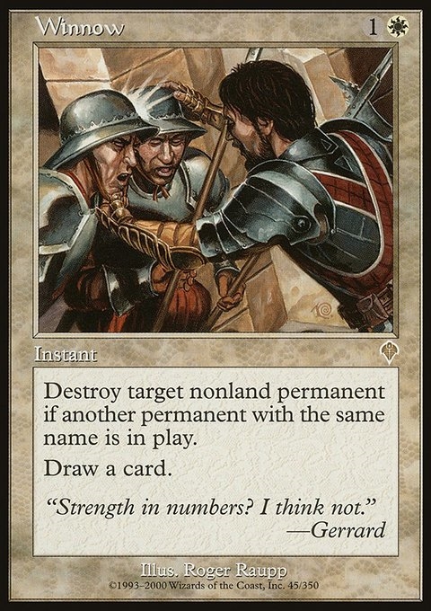 Destroy target nonland permanent if another permanent with the same name is in play.
