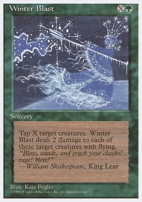 Tap X target creatures. Winter Blast deals 2 damage to each of these target creatures with flying.