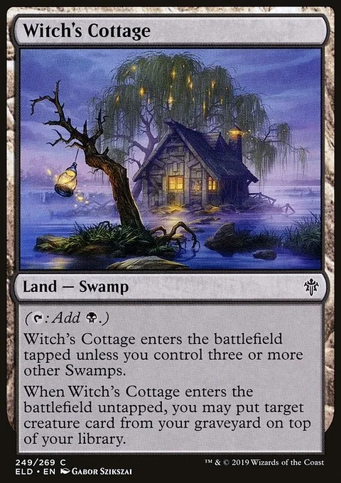 ({T}: Add {B}.) This land enters tapped unless you control three or more other Swamps. When this land enters untapped, you may put target creature card from your graveyard on top of your library.