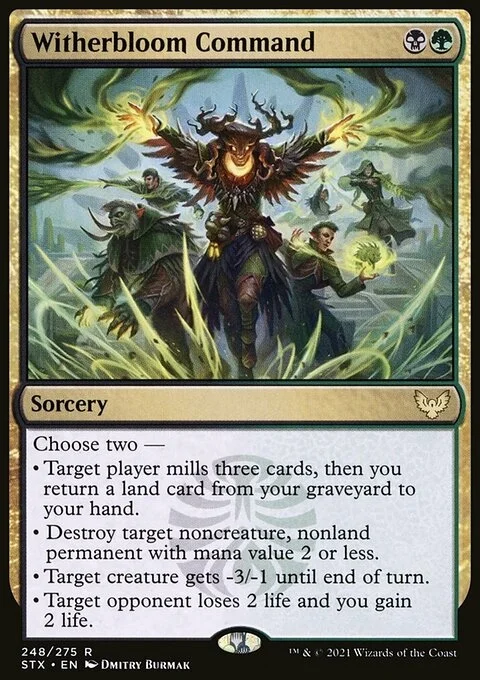 • Target player mills three cards, then you return a land card from your graveyard to your hand.