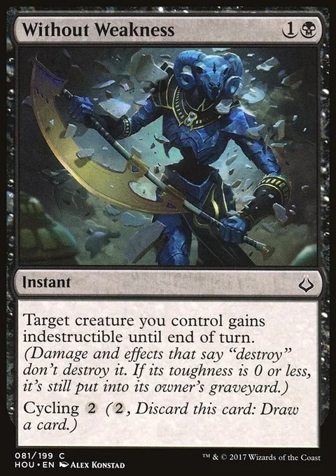 Target creature you control gains indestructible until end of turn. (Damage and effects that say "destroy" don't destroy it. If its toughness is 0 or less, it's still put into its owner's graveyard.)