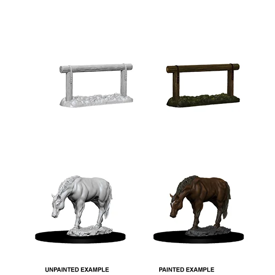 Wizkids Unpainted Deep Cuts Miniatures Horse & Hitch