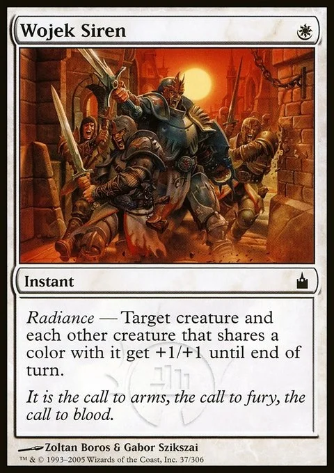 Radiance — Target creature and each other creature that shares a color with it get +1/+1 until end of turn.