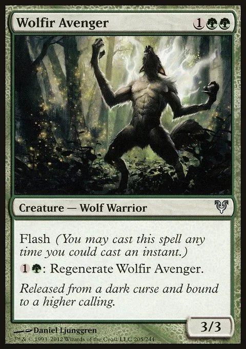 Flash (You may cast this spell any time you could cast an instant.) {1}{G}: Regenerate Wolfir Avenger.