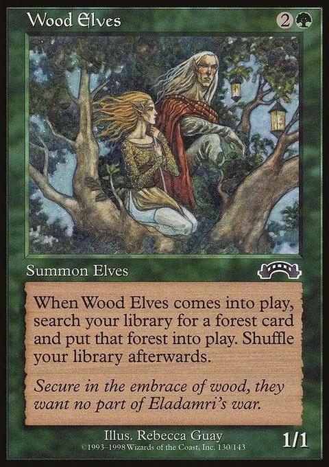 When Wood Elves enters the battlefield, search your library for a Forest card, put that card onto the battlefield, then shuffle.
