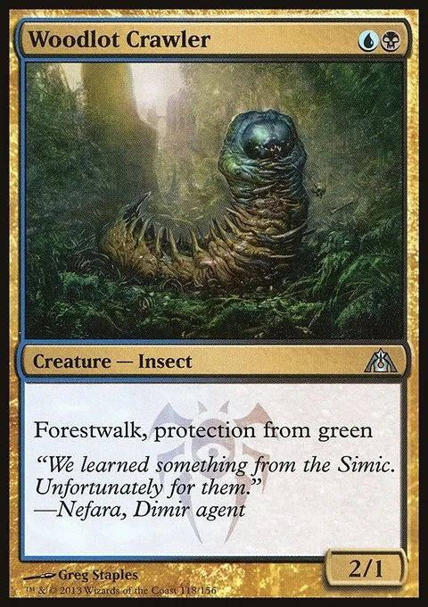 Forestwalk (This creature can't be blocked as long as defending player controls a Forest.) Protection from green