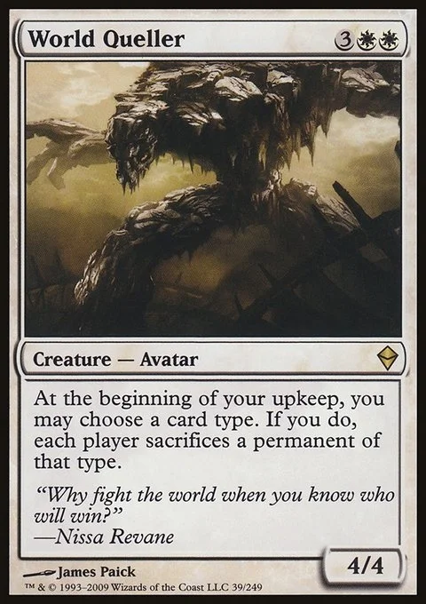 At the beginning of your upkeep, you may choose a card type. If you do, each player sacrifices a permanent of that type.