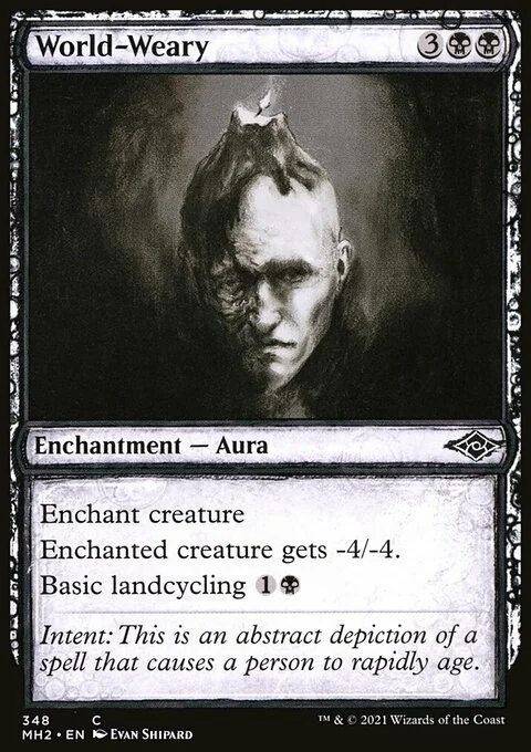 Enchant creature Enchanted creature gets -4/-4. Basic landcycling {1}{B} ({1}{B}, Discard this card: Search your library for a basic land card, reveal it, put it into your hand, then shuffle.)