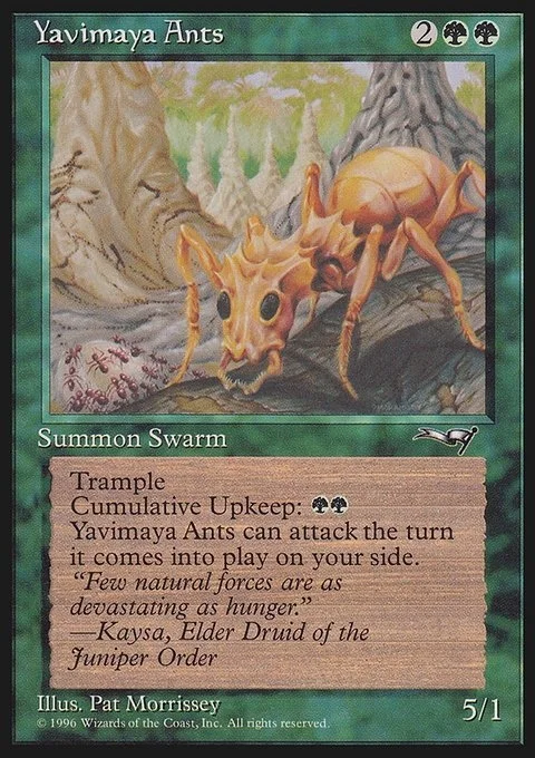 TrampleCumulative Upkeep: GGYavimaya Ants can attack the turn it comes into play on your side.