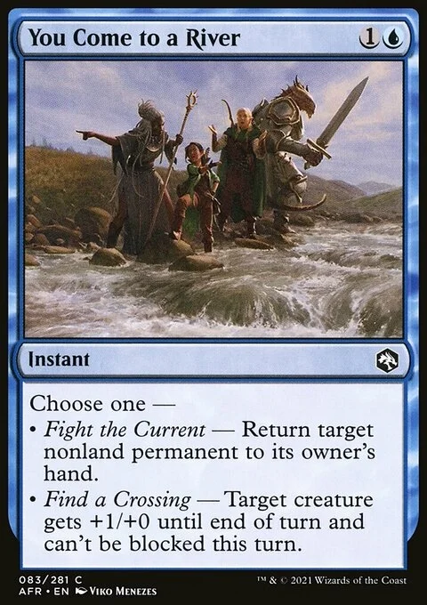 Choose one — • Fight the Current — Return target nonland permanent to its owner's hand. • Find a Crossing — Target creature gets +1/+0 until end of turn and can't be blocked this turn.