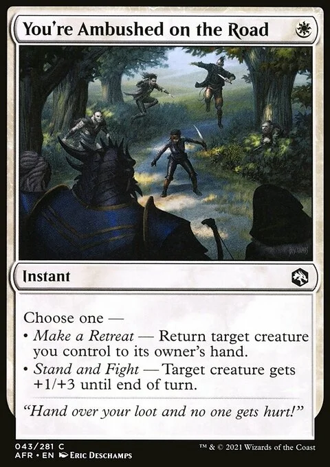 Choose one — • Make a Retreat — Return target creature you control to its owner's hand. • Stand and Fight — Target creature gets +1/+3 until end of turn.