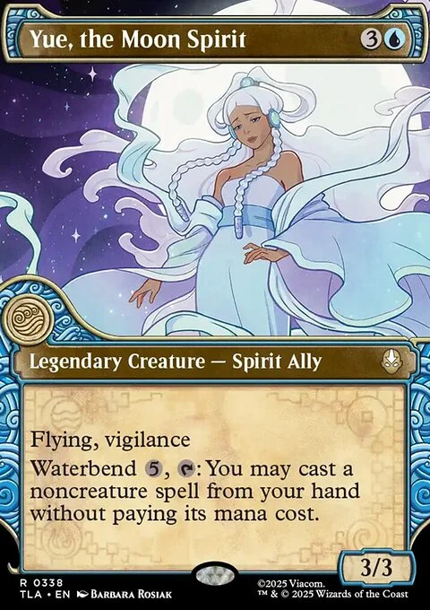 Flying, vigilance Waterbend {5}, {T}: You may cast a noncreature spell from your hand without paying its mana cost. (While paying a waterbend cost, you can tap your artifacts and creatures to help. Each one pays for {1}.)