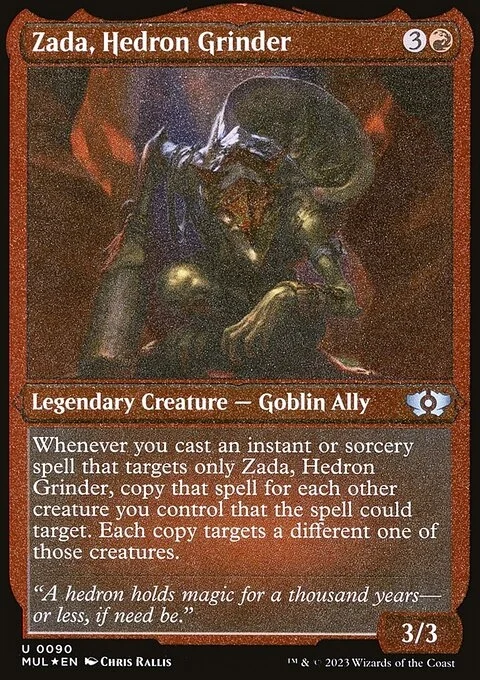 Whenever you cast an instant or sorcery spell that targets only Zada, copy that spell for each other creature you control that the spell could target. Each copy targets a different one of those creatures.