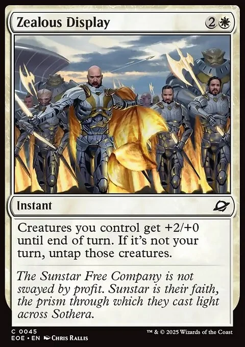 Creatures you control get +2/+0 until end of turn. If it's not your turn, untap those creatures.