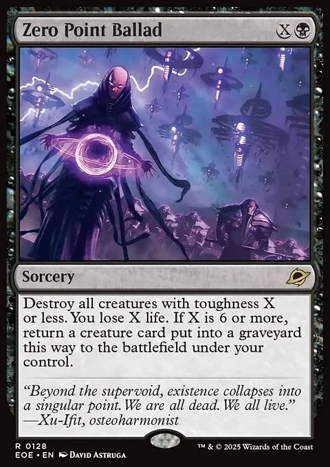 Destroy all creatures with toughness X or less. You lose X life. If X is 6 or more, return a creature card put into a graveyard this way to the battlefield under your control.