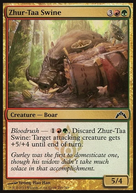 Bloodrush — {1}{R}{G}, Discard Zhur-Taa Swine: Target attacking creature gets +5/+4 until end of turn.