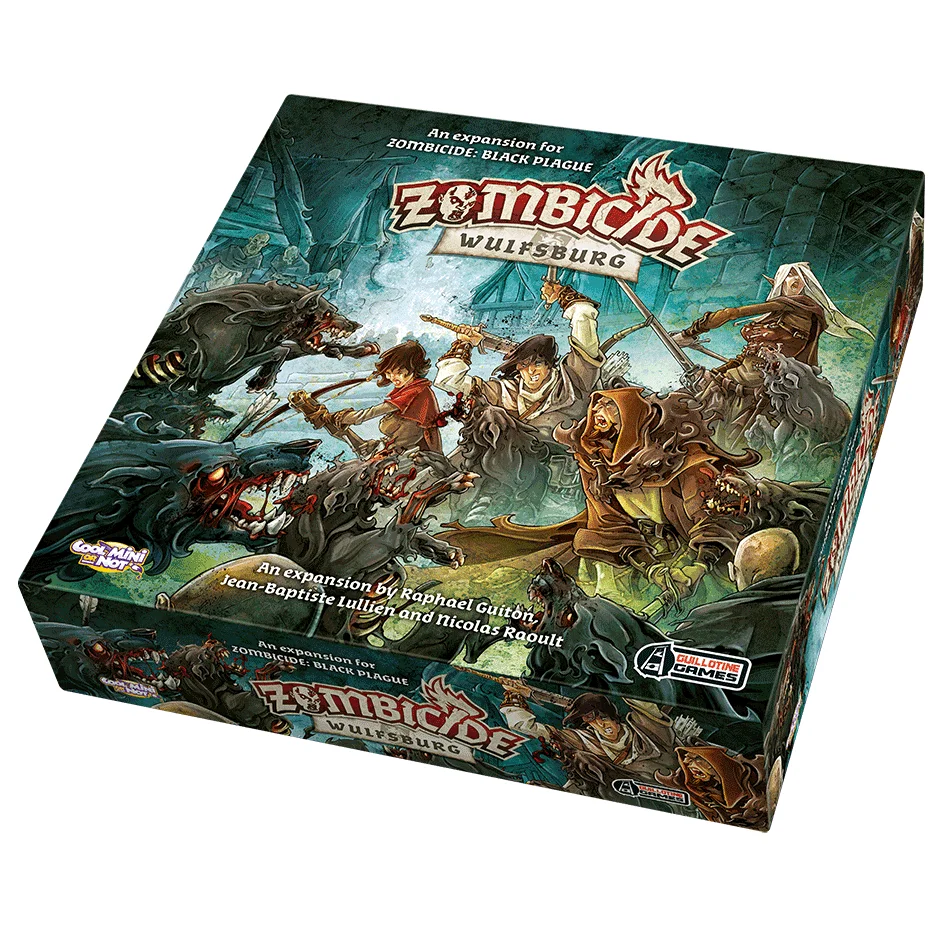 Wulfsburg is an expansion for the Zombicide: Black Plague board game. Explore new ways to hunt zombies with four new survivors and 18 new Equipment cards featuring magic weapons and potent spells! Beware, however: the quick and merciless Zombie Wolfz are on your tail all through 10 breathtaking new missions. Slash your way to the top of the towers marking your new hunting ground. Who’s the apex predator now? Welcome to Wulfsburg!