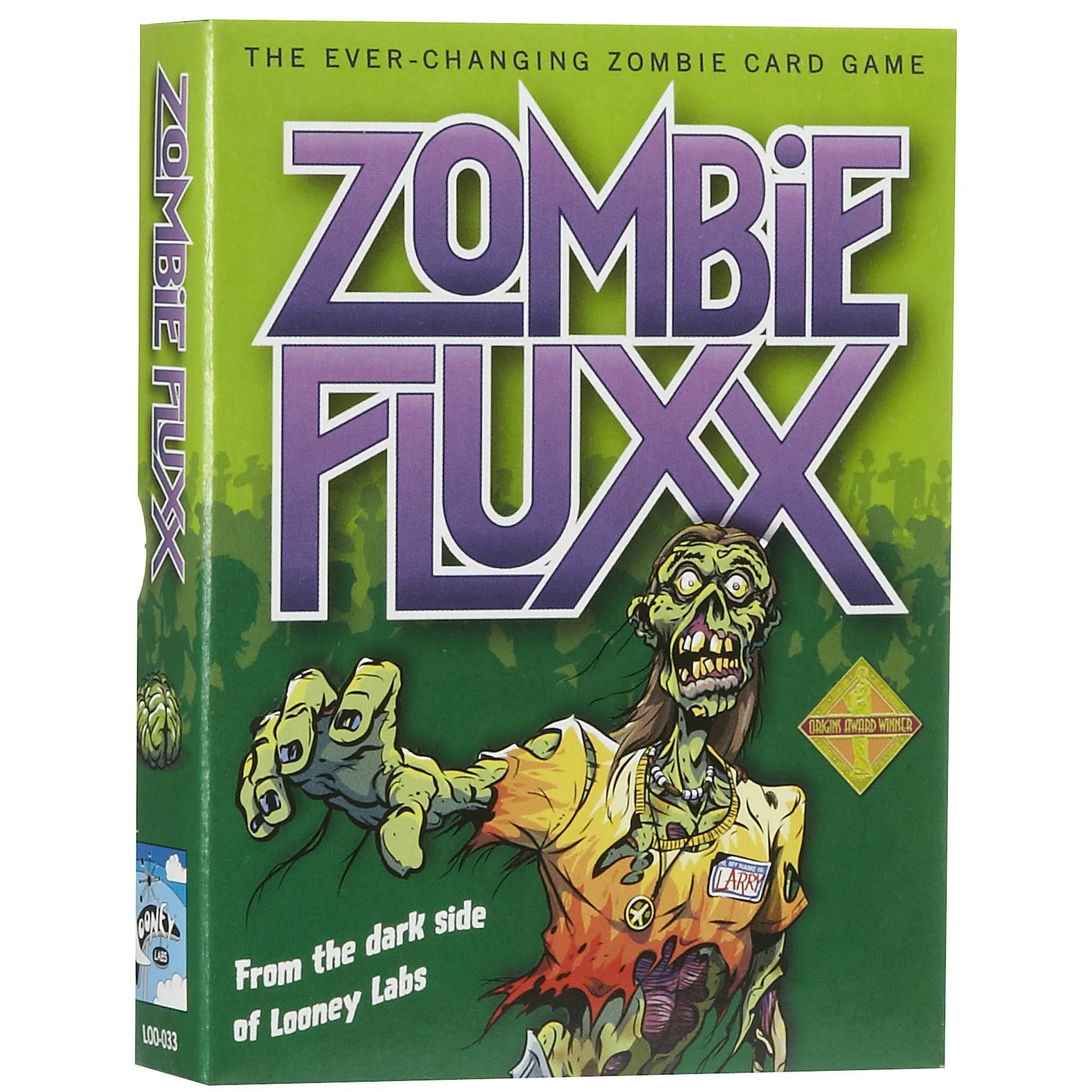 Welcome to the dark side of Fluxx, the card game of ever-changing rules! Zombie Fluxx takes the award-winning card game Fluxx and cranks up the fun with a Zombie uprising. The Zombies arrive in the form of a new type of card, called the Creeper, which hangs around in front of you, preventing you from winning.